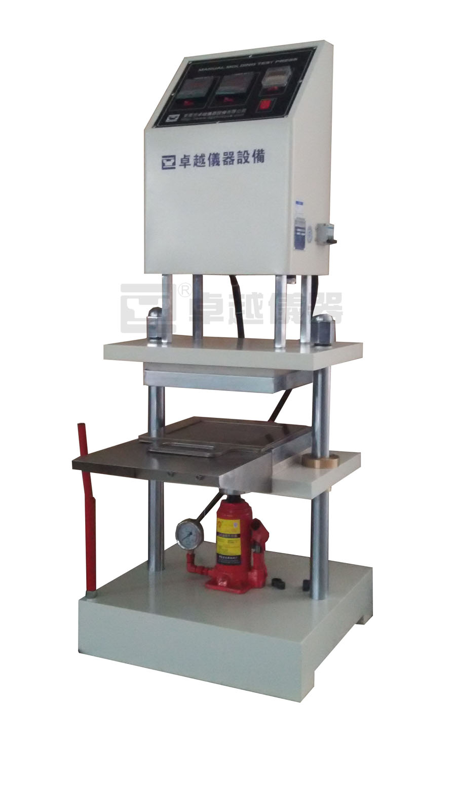 本機(jī)主要用於將橡膠類材料加鑄成型,以供試驗(yàn)使用,本機(jī)採(cǎi)用電熱原理,將原料放於模具內(nèi)並把模具置於本機(jī)兩電熱平板間,加以壓力、溫度及時(shí)間使原料硫化成型。