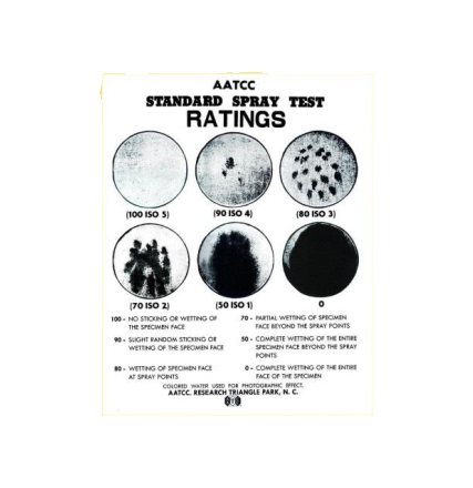 美國AATCC協(xié)會 #08387,22 噴淋式沾水評審樣照。